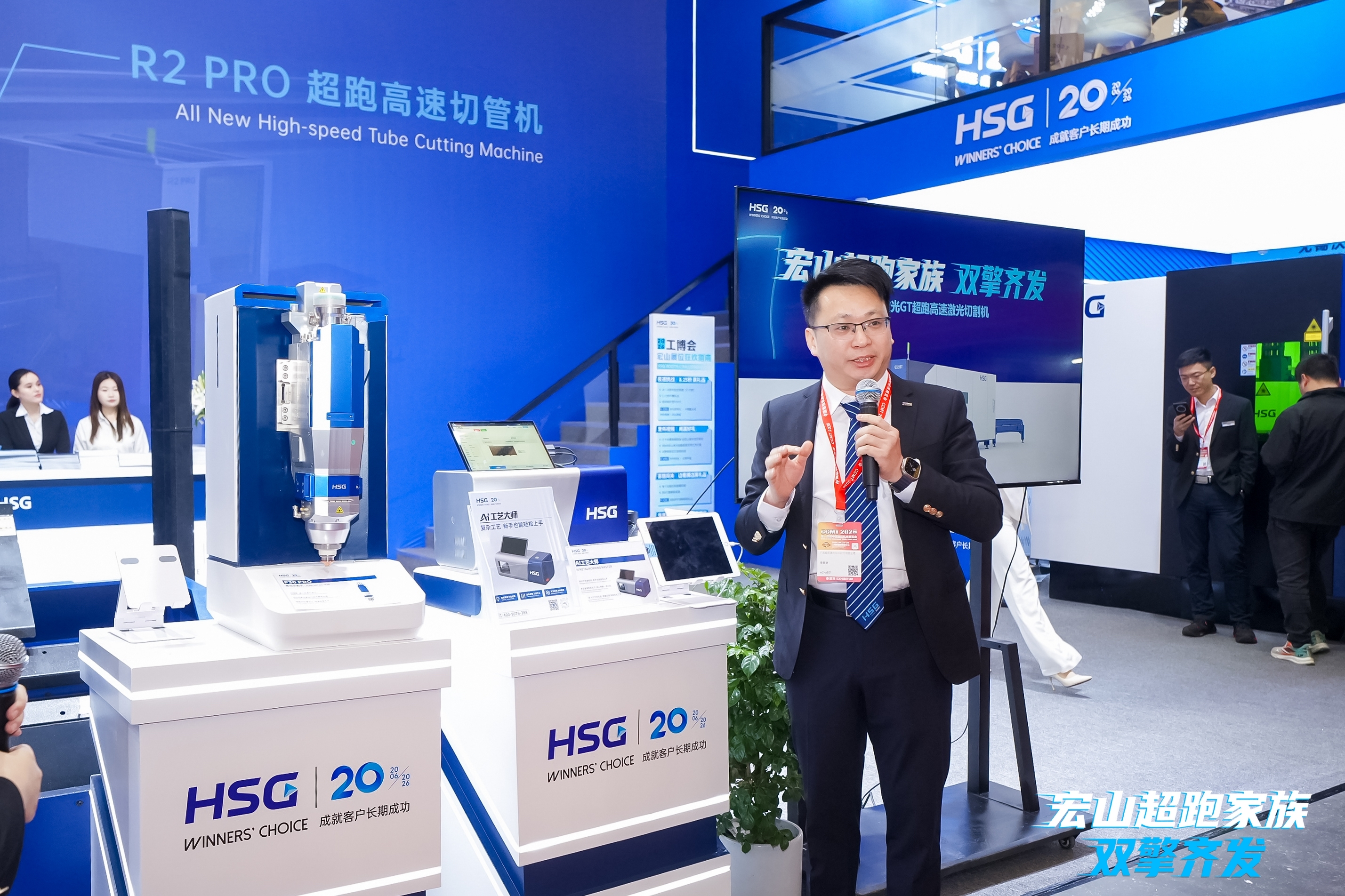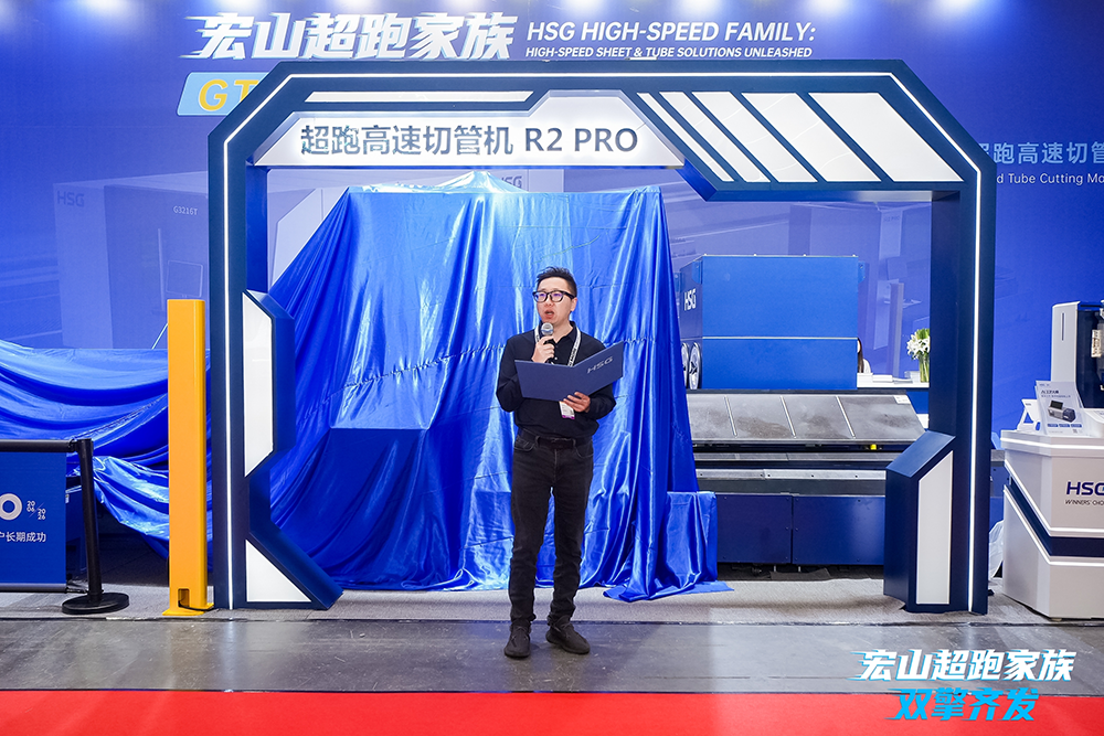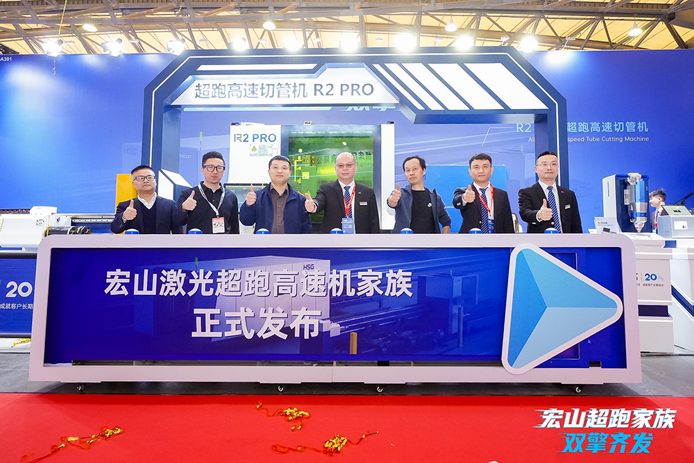 在展会现场嘉宾以及直播间粉丝的共同见证下,宏山激光超跑家族成员——R2 PRO高速切管机正式揭开神秘面纱,重新定义行业高速切管新标准。作为宏山激光在高速切管领域的又一重要成果,R2 PRO通过系统化性能升级,全面提升中管切割在速度、精度与成本控制等关键维度,为行业高质量加工提供全新解决方案。